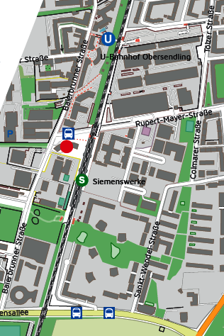 - Mit der U-Bahn-Linie 3 bis zur Haltestelle Obersendling (500 m Fußweg)