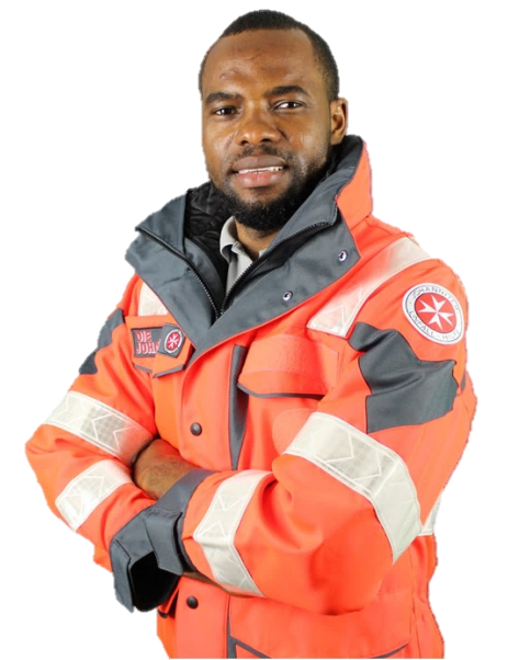 Friday stammt aus Nigeria und ist seit 2016 in Deutschland. In seiner Heimat hat er Statistik studiert und Bekleidung hergestellt. Er hat im März 2019 die ZIEL-Qualifizierung zum Rettungssanitäter bei den Johannitern begonnen und vor kurzem die Abschlussprüfung bestanden. Im Anschluss hat er bei den Johannitern eine Arbeitsstelle gefunden. Seit Anfang Oktober fährt er im Krankentransport: „Mein erster Tag war sehr erfolgreich. Heute bin ich das erste Mal als Beifahrer im KTW gefahren. Damit bin ich für den Patienten verantwortlich. Ein sehr gutes Gefühl.“