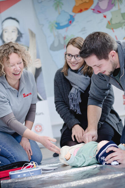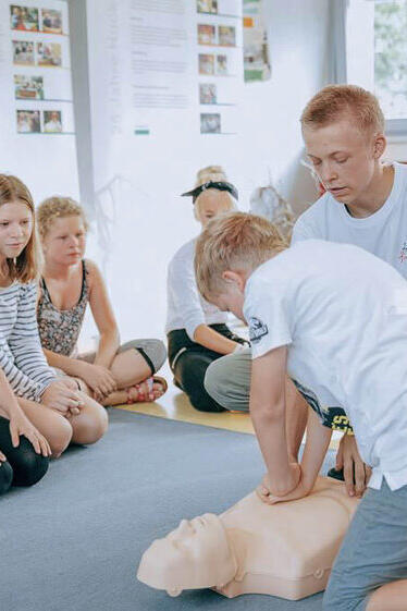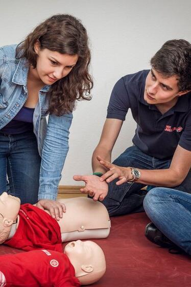 In unseren Kursen gehen Theorie und Praxis Hand in Hand. Ein ausgiebiges Training und die Motivation der Teilnehmenden zur aktiven Ersten Hilfe stehen bei uns im Vordergrund.