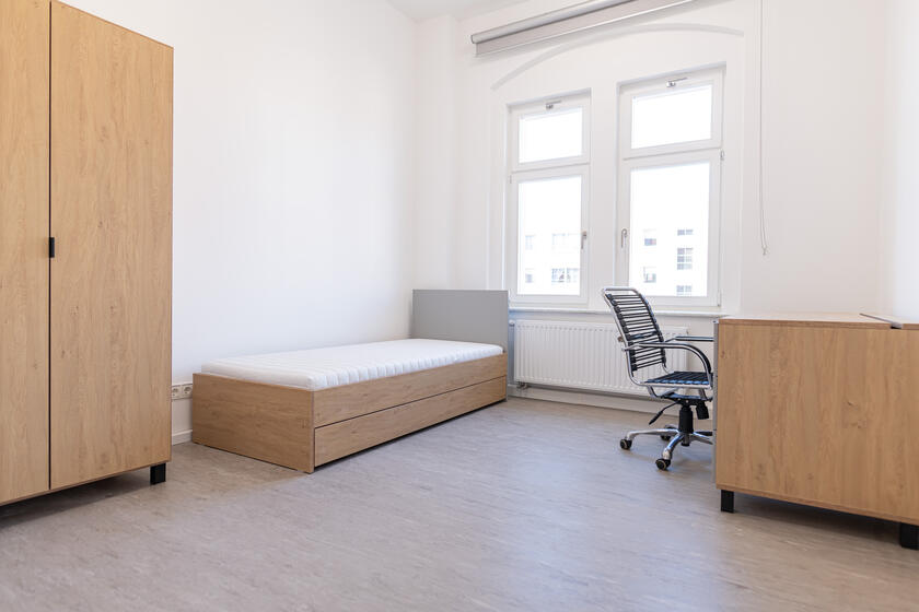 Die Johanniter-Akademie Mitteldeutschland bietet ihren Auszubildenden direkt am Campus Lorenzo im Leipziger Stadtteil Reudnitz-Thonberg möblierte WG-Zimmer zu einem monatlichen Mietpreis von 399,00 Euro warm an. Die Zimmer, stehen Ihnen seit dem 01.10.2021 als Erstbezug nach umfangreicher Sanierung und Renovierung zur Verfügung. Die Wohneinheiten verfügen über eine voll ausgestattete Einbauküche und einem Gemeinschaftsraum. Alle Einzelzimmer sind mit einem Kleiderschrank, Schreibtisch und Stuhl sowie mit einem Bett inkl. Lattenrost und Matratze ausgestattet.