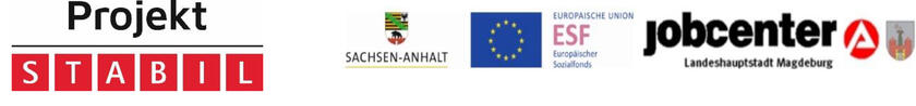Das Projekt STABIL in Magdeburg wird aus Mitteln des Europäischen Sozialfonds und des Landes Sachsen-Anhalt gefördert und in Zusammenarbeit mit dem Jobcenter der Landeshauptstadt Magdeburg durchgeführt. Der Projektname steht für: Selbstfindung - Training - Anleitung - Betreuung - Initiative - Lernen.