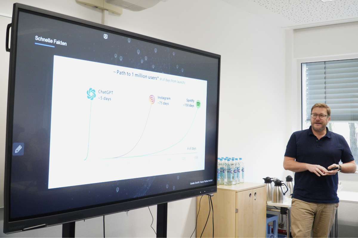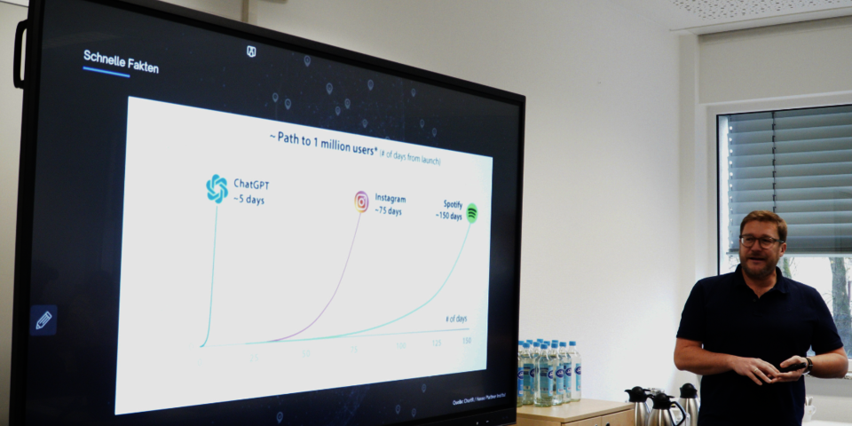 In verschiedenen praktischen Anwendungsbeispielen und Übungen zeigte Jobst Höche, wie ChatGPT bei der Erstellung von Bildern, Songs, Texten oder auch bei der Unterrichtsvorbereitung – beispielsweise bei der Erstellung von Aufgaben oder Prüfungen - unterstützen kann. Die Teilnehmenden erhielten zudem wertvolle Tipps und Tricks für das Schreiben von sogenannten Prompts und den Umgang mit KI. Eine abschließende Diskussionsrunde bot Raum für Feedback, Fragen und den Austausch über die gewonnenen Erkenntnisse. Die positive Resonanz unterstrich den Mehrwert der Fortbildung für den beruflichen Alltag.