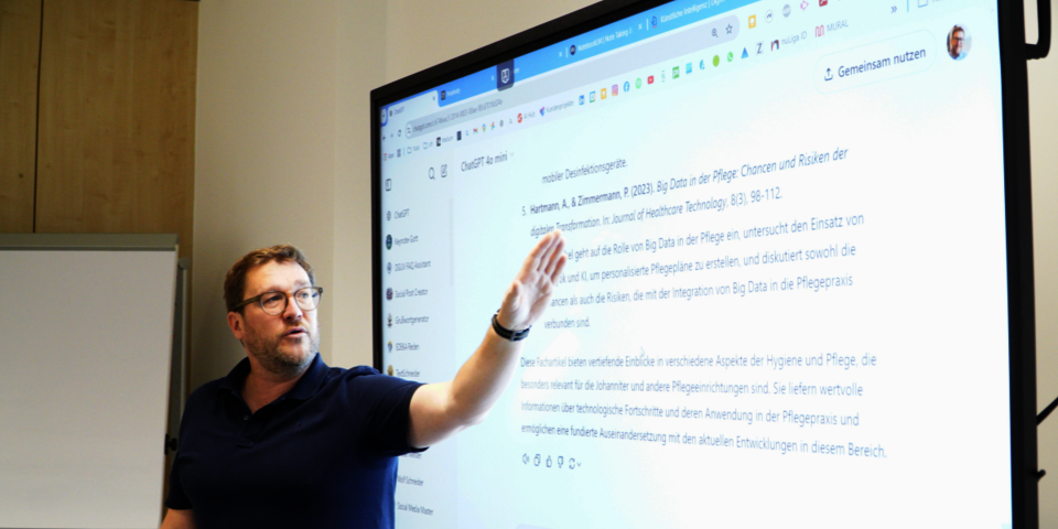 Um die Kenntnisse der Mitarbeitenden zum Thema Künstliche Intelligenz zu erweitern, organisierte die Johanniter-Akademie NRW am 27. und 28. November eine inspirierende Fortbildung zum Thema KI, die vom KI-Experte Jobst Höche geleitet wurde.