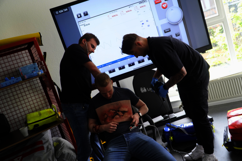 Dazu halten wir modernste Trainingsmodelle und entsprechende Übungsmaterialien vor, die in unserem neu errichteten, interdisziplinären Simulationszentrum zum Einsatz kommen. Daneben bieten wir den Auszubildenden an unserem Campus noch eine weitere Möglichkeit des Trainings: Über Simulationen in einem VR-System können wir hochkomplexe Notfallszenarien realitätsnah darstellen.