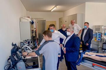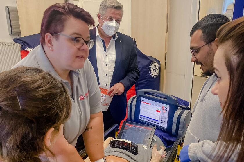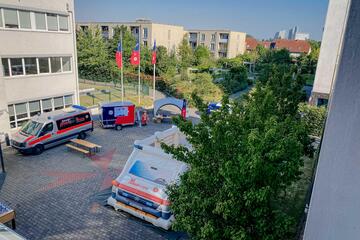 Nach einem erfolgreichen Auftakt im Juli 2022 wurde der Fortbildungstag im Gesundheitswesen "edJUHcation" am 1. August 2023 unter dem Motto "Simulation im Gesundheitswesen" fortgesetzt. Gemeinsam mit Branchenpartnern wie Skillqube, Teleflex, TriCat und Vireed stellte das Kompetenzteam Fort-und Weiterbildung am Campus Münster innovative Produkte und Software aus den Gesundheitsberufen Rettung und Pflege sowie der Aus- und Fortbildung der Akademie vor. Die Gäste konnten an Workshops, Vorträgen und Präsentationen teilnehmen und hatten die Möglichkeit Innovationen live vor Ort zu testen.