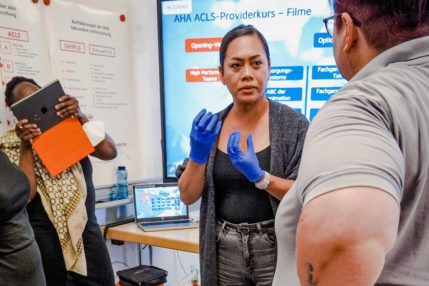 Bei der Veranstaltung konnten die Teilnehmenden den Campus kennenlernen und ins Gespräch mit Fachleuten kommen, um so berufliche Bildung gemeinsam zu gestalten. Den Abschluss des Fortbildungstages bildete eine Podiumsdiskussion zum Thema "Simulation im Gesundheitswesen". Dabei hatten die Experten und das Publikum die Möglichkeit, sich über Chancen und Herausforderungen von VR-gestützten Simulationssystemen im Gesundheitswesen auszutauschen.