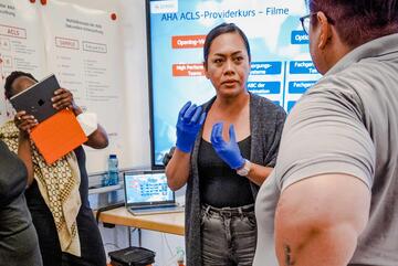 Ambu entwickelt und produziert professionelle diagnostische und lebensrettende Medizinprodukte für Krankenhäuser und Rettungsdienste. Im Bereich der Simulation hast Du die Möglichkeit, AmbuMan Basic und AmbuMan Sam und weitere Trainer kennenzulernen.