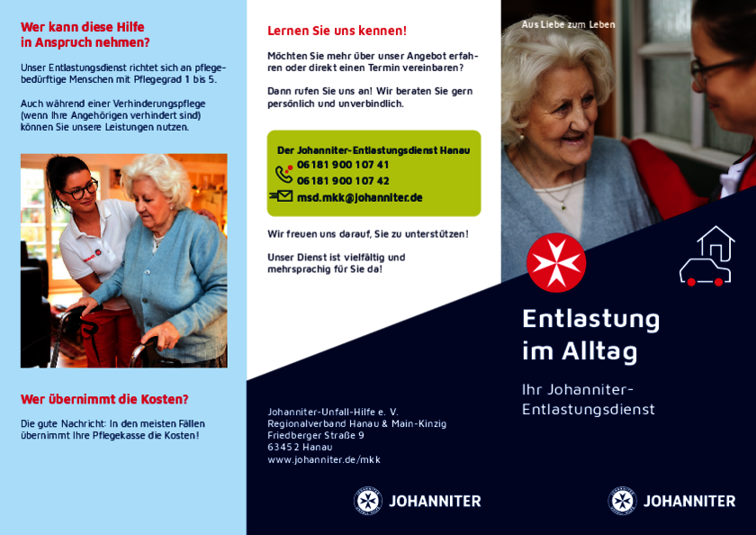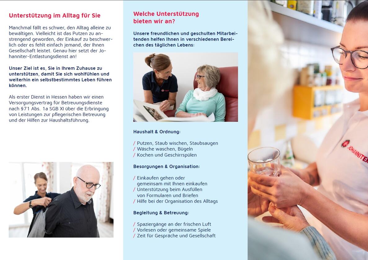 Die Johanniter in Hanau haben einen neuen Betreuungsdienst, der einen Versorgungsvertrag nach §71 Abs. 1a SGB XI erhalten hat. Mit diesem Vertrag bietet der Betreuungsdienst umfassende Leistungen zur Unterstützung bei der Haushaltsführung und Betreuungsleistungen gemäß §36 SGB XI an.