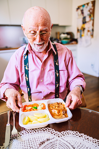 Gutes Essen hält Leib und Seele zusammen. Aber dafür Einkaufstüten schleppen und stundenlang am Herd stehen? Der Johanniter-Menüservice ist eine echte Alternative - Kundinnen und Kunden wählen einfach à la carte aus und genießen abwechslungsreiches und gutes Essen. Die Menükuriere bringen das Mittagessen ganzjährig direkt an die Haustür. Je nach Region lässt sich ein Menüplan nach persönlichen Wünschen zusammenstellen. Ob Vollkostgerichte, vegetarische Menüs oder besondere Kostformen wie Dialysekost, unser Menüservice begeistert mit einer großen Vielfalt an Menüvariationen für jeden Geschmack und jede Diät. Je nach Region und Angebot liefern wir das Gericht tiefkühlfrisch zur Zubereitung in der eigenen Küche oder als heißes frisch zubereitetes Gericht. Unsere Kundinnen und Kunden entscheiden selbst, an welchen Tagen wir ihr Menü liefern - ganz ohne Vertragsbindung.