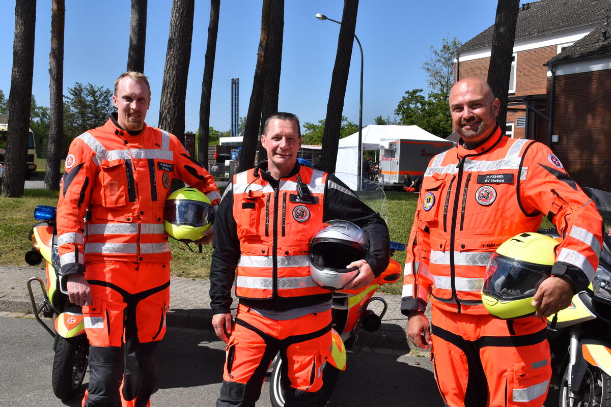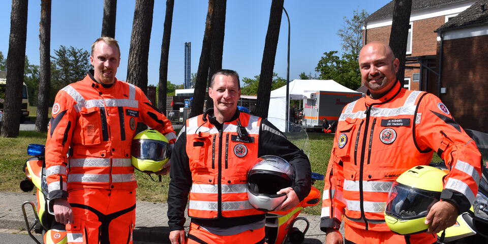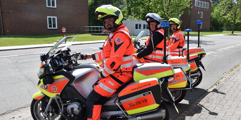Die Johanniter-Motorradstaffel im Regionalverband Harburg wurde 1996 gegründet und hat derzeit neun Fahrer und drei Maschinen. Die Fahrer helfen in Kooperation mit der Autobahnpolizei bei der Beseitigung von Stauursachen, dem Heranführen von Pannenhelfern oder der Versorgung erschöpfter Autofahrer. Alle Johanniter-Biker sind ausgebildete Ersthelfer, Sanitätshelfer, Rettungssanitäter oder Rettungsassistenten. Jährliches Fahrsicherheitstraining ist Voraussetzung für den Dienst in der Staffel. Wer sich für die ehrenamtliche Arbeit der Motorradstaffel interessiert, bekommt Informationen per E-Mail: motorradstaffel.harburg(at)johanniter.de