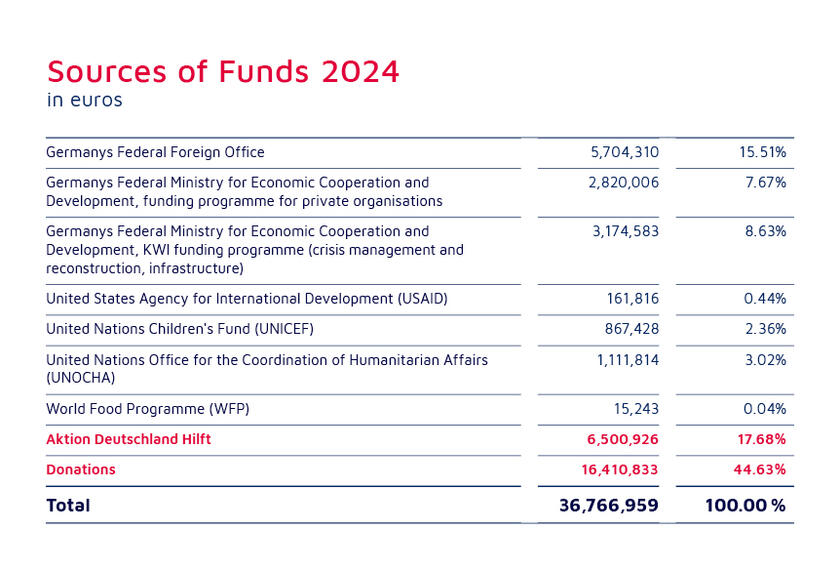 Institutional contributors with third-party funds are of particular importance to us. The Federal Ministry for Economic Cooperation and Development (BMZ) and the German Federal Foreign Office have been reliable partners for many years. Together with local partner organisations, we make a contribution to achieving globally agreed development goals or providing humanitarian aid in crisis and disaster regions. In addition, the department of European Civil Protection and Humanitarian Aid Operations (ECHO) provides important financial support for our project activities. At the project country level, specific United Nations relief funds are becoming increasingly important in order to be able to provide fast and efficient assistance in line with the local context.