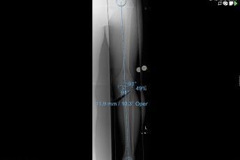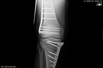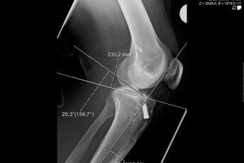 Pathological deformities of the upper or lower leg bones result in incorrect loads on the knee joint, but they can also result in restricted movement. A precise axis analysis, which we can perform with the help of a computer programme, shows us the location of the deformity. This enables us to carry out a correction at the site of the malposition by cutting through the bone (osteotomy) and then stabilise this correction with stable-angle plates. Partial weight-bearing and free mobility is usually possible immediately. Osteotomies close to the knee joint on the upper leg (femur) and lower leg (tibia) have proven successful in the prevention and treatment of osteoarthritis and in the treatment of ligament instabilities.