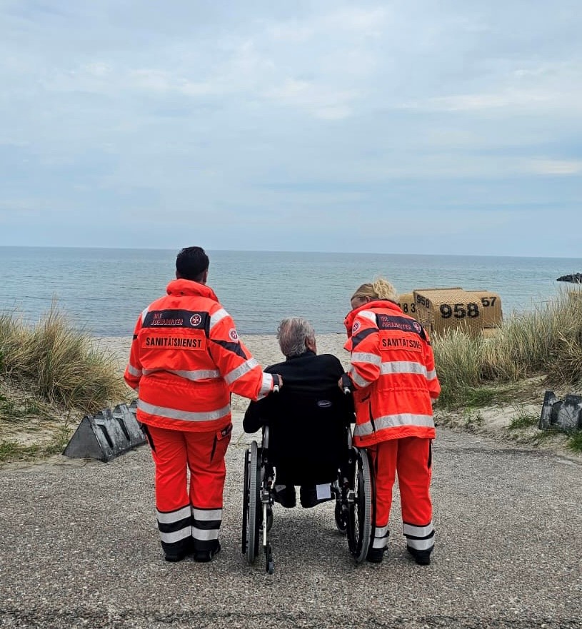 Am Schöneberger Strand noch einmal die vorbeifahrenden großen und kleinen Schiffe betrachten, dass was der große Wunsch von Jürgen aus Fredenbeck bei Stade. Noch einmal mit der Familie zum vertrauten Schöneberger Strand an die See reisen. Ostseeluft schnuppern. Hier hatte Jürgen früher beruflich mit dem Johanniter Fahrdienst zusammengearbeitet und sehr gute Erlebnisse genossen. Mit der Wunsch-Ambulanz kann Menschen, in palliativen Lebenslagen noch einmal in ihrer letzten Lebensphase ein sehnlicher Wusch erfüllt werden. Zum Beispiel einen Lieblingsort besuchen. mit der ganzen Familie an den Ostseestand reisen oder noch einmal das Elternhaus zu besuchen.