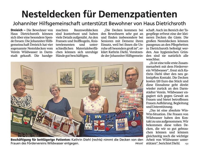 Presse Nesteldecken für Demenzpatienten Therapeuten auf vier Pfoten, Offenbach Post/Dreieich - 23. Mai. 2024