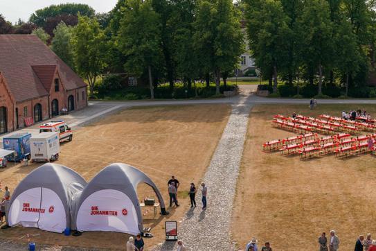 Sie dankte besonders den Ehrenamtlichen, denn diese hatten den gesamten Abend gestaltet: Von der Parkplatzeinweisung bis zur letzten Tasse Kaffee kümmerten sich Ehrenamtliche um die Gäste. Die Logistikgruppe der Lübecker Johanniter-Unfall-Hilfe ist normalerweise bei Feuerwehreinsätzen oder im Katastrophenschutz im Einsatz. Auf dem Kultur Gut sorgte sie gemeinsam mit den Pfadfindern für das leibliche Wohl der Gäste.