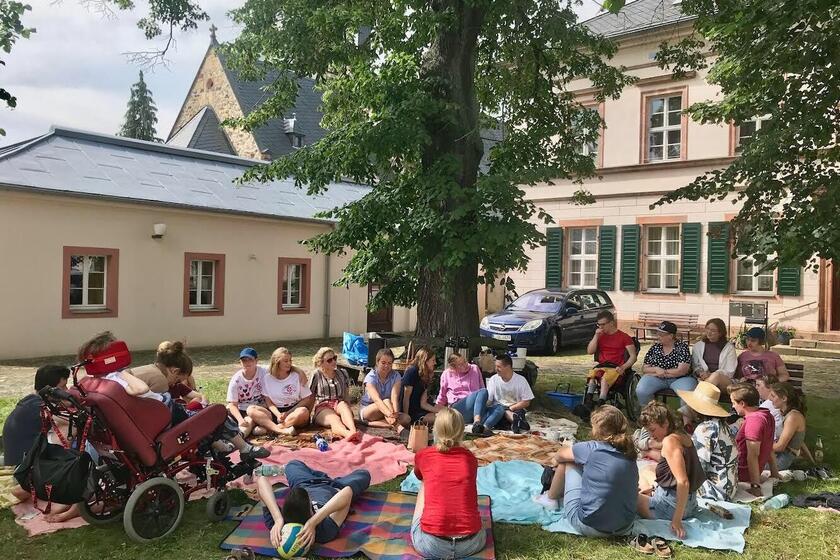 Das diesjährige Sommerlager in Kohren-Sahlis vom 4. bis 11. August war für die 11 Gäste und 19 Betreuer wieder ein herausragendes Ereignis. Erneut bot diese besondere Woche im Jahreskalender unter Leitung von Felicia Hein, Clemens Walter Thom und Jakob Freier neben dem Beisammensein, gemeinsamen Mahlzeiten, Wohlfühlmomenten, Andachten und auch mal Herausforderungen in der Pflege und Betreuung zahlreiche Höhepunkte: