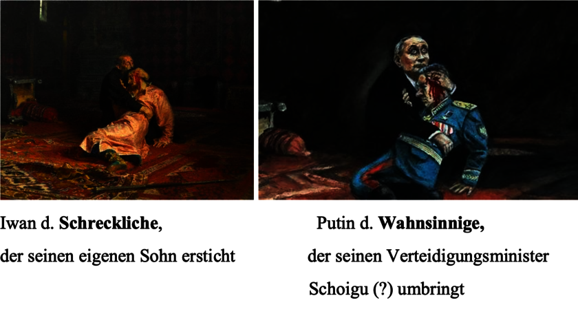 Unserem aktuellen Bericht über die Aktivitäten der JHG-ÖB und der Verwendung der großzügigen Spenden möchten wir die beiden Bilder aus dem FAZ Beitrag vom 26.03.2022 (St. Trinks: "Im Kreml brennt kein Licht") voranstellen, weil sie die verrückte, wahnsinnige, skrupellose und unbarmherzige Situation von Putins Angriffskriegs gegen die Ukraine mitten in Europa so treffend widergeben, aber gleichzeitig auch einen interessanten geschichtlichen Bezug aufbauen.