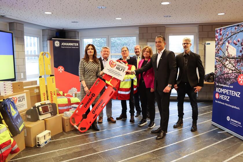 Neben den Vertretern der Johanniter-Unfall-Hilfe e.V., Neuss Hilft e.V., dem Bethesda-Krankenhaus und MdB Hermann Gröhe war zudem die ukrainische Generalkonsulin Iryna Schum vor Ort, um die Spendenübergabe zu begleiten.