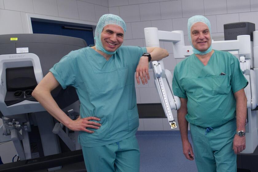 Dr. Nicola Cerasani und PD Dr. Andreas Tittel mit dem DaVinci Operationssystem