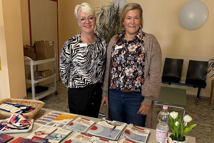 Eine Sepsis kann grundsätzlich jeden Menschen treffen, es gibt aber zusätzliche Risikofaktoren, die die Entstehung einer Sepsis erhöhen“, sagt Andrea Krämer vom Qualitäts- und Klin. Risikomanagement. Sie und ihre Kollegin Nadine Welz standen für Fragen bereit und verteilten Informationsbroschüren der Kampagne „Deutschland erkennt Sepsis“. Besonders gefährdet sind beispielsweise Menschen über 60 Jahre, Früh- oder neugeborene Kinder, wenn chronische Erkrankungen oder ein geschwächtes Immunsystem vorliegen, Menschen ohne Milz und wenn wichtige Impfungen (zum Beispiel Grippe, Pneumokokken, Covid-19 und Meningokokken) fehlen.