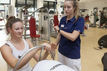 Zusätzlich gibt es vielfältige Trainingsmöglichkeiten an den zahlreichen Kraft-und Ausdauer-Trainingsgeräten, um das Training auf die aktuellen Ressourcen und Defizite genau abzustimmen.