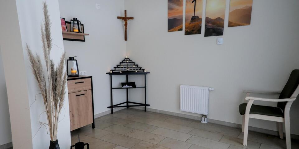 Der ‘Raum der Stille’, der durch Spenden vom Verein der Freunde und Förderer der Johanniter-Kliniken Dortmund e.V. finanziert wurde, steht Patientinnen und Patienten, Angehörigen und Mitarbeitenden als offenes Angebot zur Verfügung.