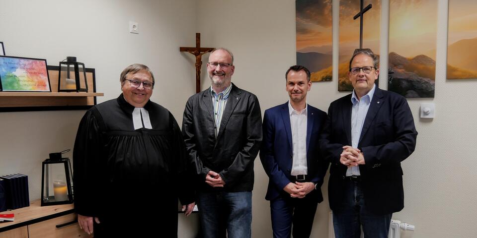 Michael Stache (Ständig Stellvertretender Superintendent, ev. Kirchenkreis Dortmund) und Markus Wessel (Verein der Freunde und Förderer der Johanniter-Kliniken Dortmund e.V.) haben ebenfalls an dieser Veranstaltung im kleinen Kreis teilgenommen und die Möglichkeit genutzt, sich den Raum vor Öffnung für die Öffentlichkeit anzuschauen.
