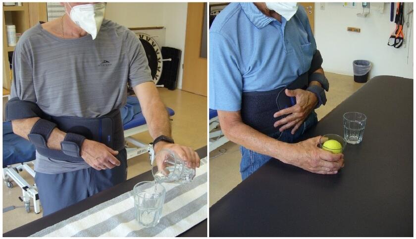 - Sie sind einverstanden damit, dass während der Übungszeit der gesunde Arm in einem Bauchgurt eingebunden ist, so dass jedes Mithelfen des gesunden Armes dadurch ausgeschlossen wird.