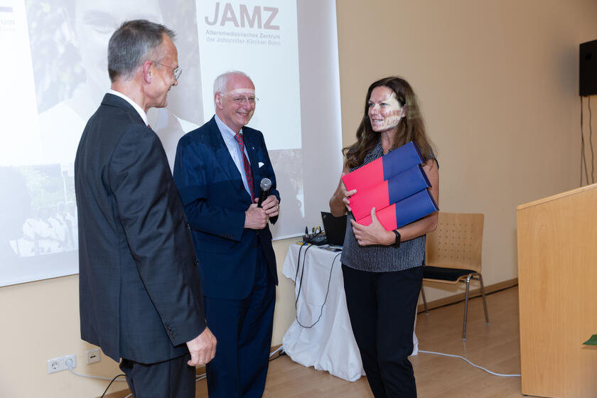 Eine zentrale Rolle in der Altersmedizin der Johanniter-Kliniken Bonn spielt hierbei die von der deutschen Gesellschaft für Geriatrie (DGG) empfohlene Vernetzung. So steht Patientinnen und Patienten neben dem zertifizierten Alterstraumatologischen Zentrum (JATZ), zudem das Altersmedizinische Zentrum der Johanniter (JAMZ) zur Verfügung. Weitere Impulse, die die lokale Netzwerkbildung zu den Themen „Alter“ und „Altern“ befördern, sind zudem die Fortbildungsreihe „Forum Altersmedizin“ sowie die Formulierung der „Bonner Impulse Gesundes Altern“ in Kooperation mit dem Arbeitskreis Geriatrie des Gesundheitsamtes Bonn. Zukunftsweisende Schritte geht die Bonner Altersmedizin zudem mit Blick auf verschiedenste Forschungsprojekte. So etwa in Zusammenarbeit mit der Herbert-Worch-Stiftung sowie der Robort-Bosch-Stiftung zu spezifischen Themengebieten in der onkologischen und neurologischen Geriatrie.