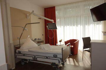In der großen Mehrzahl unserer Zimmer sind Dusch- und Toilettenräume integriert. Außerdem verfügen alle Patientenzimmer über einen TV sowie ein multifunktionales Mediengerät direkt am Krankenbett.