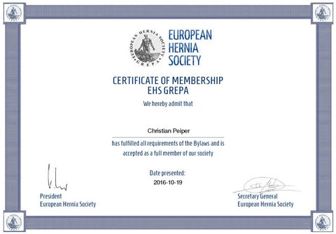 - Mitglied in der Europäischen Herniengesellschaft
