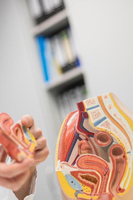 Wir setzen auf den Dialog mit unseren Patientinnen und stimmen Prozesse und Entscheidungen mit allen Beteiligten ab. So loten wir auch nach Möglichkeit den für Sie besten Behandlungsmodus aus, der in vielen Fällen einen operativen Eingriff beinhaltet. Wenn möglich, geben wir besonders schonenden und modernen Methoden wie der minimal-invasiven Chirurgie (MIC) den Vorzug. Sie kommt unserer Zielsetzung, Sie möglichst bald wieder in den Alltag zu entlassen, sehr entgegen, da sie mit einer kurzen Genesungsphase verknüpft ist. Sollte es doch zu einer vielleicht auch längeren stationären Aufnahme kommen, halten wir für Sie ein großes Spektrum an diagnostischen und therapeutischen Möglichkeiten vor.