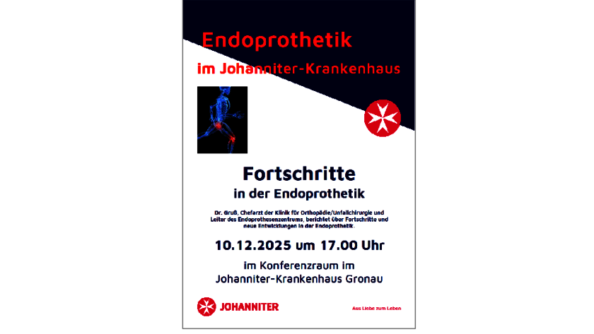 Am 10.12.2025 hält Herr Dr. Gruß, unser Chefarzt der Fachabteilung für Orthopädie und Unfallchirurgie und Leiter des Endoprothesenzentrums, um 17.00 Uhr einen Vortrag zu den modernen Versorgungsstrategien und Neuerungen in der Endoprothetik.