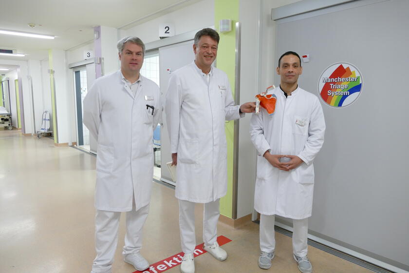 Die Gelenkspezialisten des Johanniter-Krankenhauses Rheinhausen informieren am Mittwoch, 14. Juni 2023 über die Behandlungsmöglichkeiten der Schulter um 17.00 Uhr im Ohletz-Saal des Krankenhauses. V.l. Oberarzt Dr. Philipp Kunze, Chefarzt Dr. Martin Fischer und Oberarzt Ioannis Tamissis.