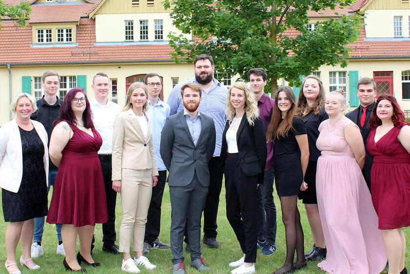 14 strahlende Absolventen und Absolventinnen der Pflegeschule am Johanniter-Krankenhaus Treuenbrietzen (8 Herren und 6 Damen) erhielten ihre Abschlusszertifikate als Gesundheits- und Krankenpflegende und starten nun in ihr Berufsleben.