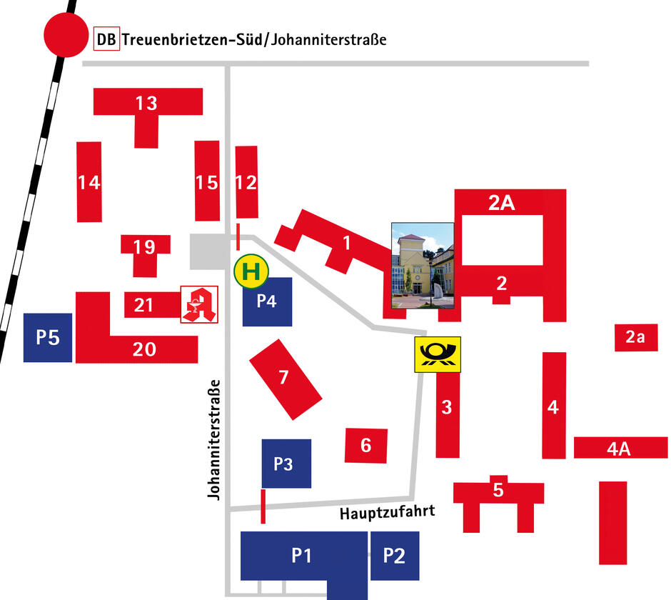 - Die Regionalbahn 33 der ODEG von Potsdam-Hauptbahnhof nach Jüterbog hält fast stündlich in unmittelbarer Nachbarschaft am Haltepunkt Treuenbrietzen-Süd/Johanniterstraße. Von dort sind es nur wenige Schritte bis zu uns.