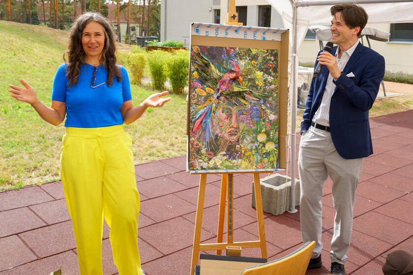 Die anschließende Podiumsdiskussion war ein bewegendes Zeugnis innerer Kämpfe, Heilung und Ausdruckskraft. Höhepunkt war die Schenkung der 3D-Collage "Phönix" von Sonja Koppitz an die Klinik, entgegen genommen von Chefarzt Dr. Eike Ahlers, um auf die Bedeutung von Kunst in der Therapie aufmerksam zu machen