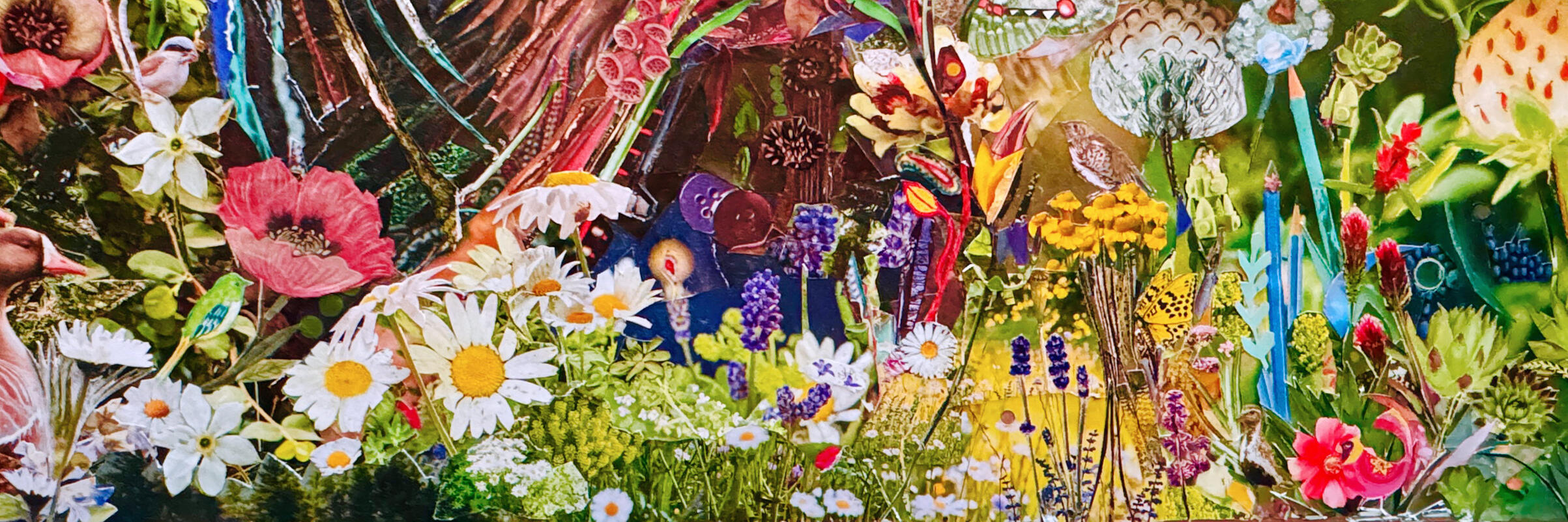 Ich nenne meine Collagentechnik “Papierschnipsel der Seele“. Scheinbares Schnipselwirrwarr findet auf der Leinwand doch wieder eine gewisse Ordnung, das beruhigt mich und verschafft mir einen Zustand der tiefen Zufriedenheit, auch wenn in meinem Kopf manchmal Chaos herrscht.
