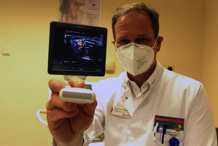 Der Ultraschallkopf verrät ganz schnell, ob ein behandlungsbedürftiges Venenleiden vorliegt. Die Untersuchung ist völlig schmerzfrei und gibt eine klare Antwort darauf, ob eine Operation notwendig ist oder nicht. Fotoquelle: Sandra Kalkmann