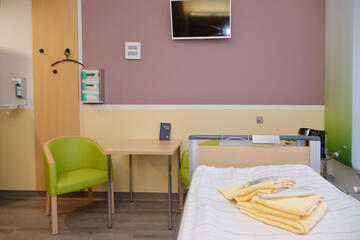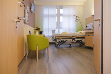 Wir möchten, dass Sie sich als Patienten in unserem Krankenhaus wohlfühlen und in einem angenehmen Ambiente genesen können. Dazu bieten wir Ihnen höher ausgestattete Wahlleistungszimmer an. Diese sind ansprechend eingerichtet und verfügen über einen eigenen Sanitärbereich mit Dusche und WC.