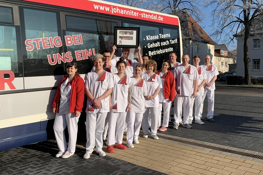 Das Johanniter-Krankenhaus hat einen eigens mit dem Slogan „Steig bei uns ein!“ präparierten Linienbus auf Tour geschickt. Mit der mobilen Botschaft wirbt das Krankenhaus für neue Kolleginnen und Kollegen. Der Bus ist täglich zwischen Salzwedel und Magdeburg unterwegs. Auf dem Bus ist auch die E-Mail-Adresse für Spontanbewerbungen zu lesen: bewerbung(at)sdl.johanniter-kliniken.de.