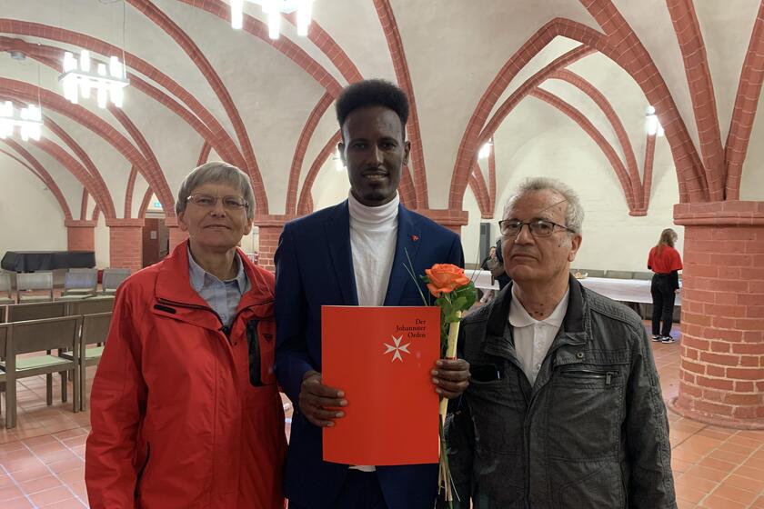 „Wir wussten, dass er es schaffen kann“, freuen sich Christine Härtel und Michael Gambke, die Yohannes Yeebyo zur Zeugnisausgabe im Dom begleiten. Sozusagen als „Ersatzeltern“ sind sie beim feierlichen Moment dabei. „Yohannes musste doppelt so viel lernen wie seine Mitschülerinnen“, sind sie sich sicher. „Er kann stolz auf sich sein.“  Ihren Schützling kennen sie, seit ihre Katholische Gemeinde in Tangermünde dem jungen Mann Kirchenasyl gewährte. Im ökumenischen Begegnungscafé treffen sie den evangelischen Christen Yohannes Yeebyo regelmäßig. Sie kennen seine Geschichte, wissen, dass er seine Religion in seinem Heimatland, in dem Christen der Verfolgung ausgesetzt sind, nicht ausleben kann. Der Biologie-Lehrer Yohannes Yeebyo musste schweren Herzens fliehen.