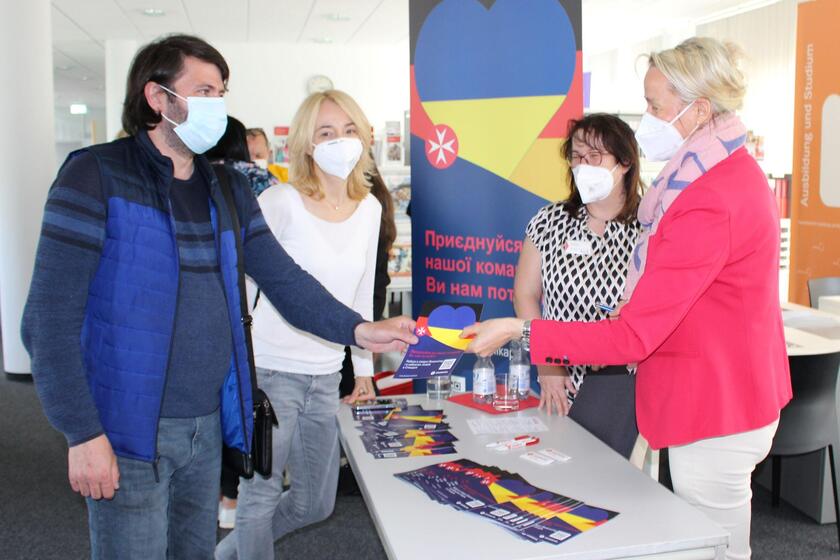 Auf der ersten Jobbörse für ukrainische Flüchtlinge - organisiert vom Landkreis Stendal und von der Agentur für Arbeit - war auch das Johanniter-Krankenhaus und das JMVZ mit einem gemeinsamen Stand vertreten. Es galt, Kontakte zu potenziellen neuen Kolleginnen und Kollegen zu knüpfen. Dies gelang auch, wie Jana Höft, Personalleiterin am Krankenhaus, berichtet. Es meldeten sich Interessierte verschiedener Berufsgruppen, von Ärztinnen und Ärzten über Laboranten bis hin zu Reinigungskräften und jungen Menschen, die eine Ausbildung beginnen wollen. „Wir stehen in den Startlöchern und begleiten die Menschen gern auf ihrem Weg zum beruflichen Neustart“, so Höft.