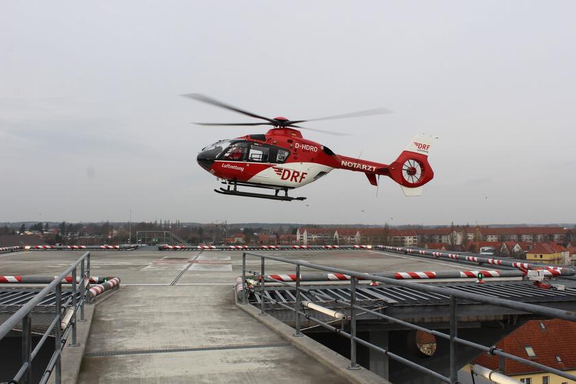 Foto: Landung eines Hubschraubers auf dem Dach des Johanniter-Krankenhauses Stendal. Foto: Claudia Klupsch