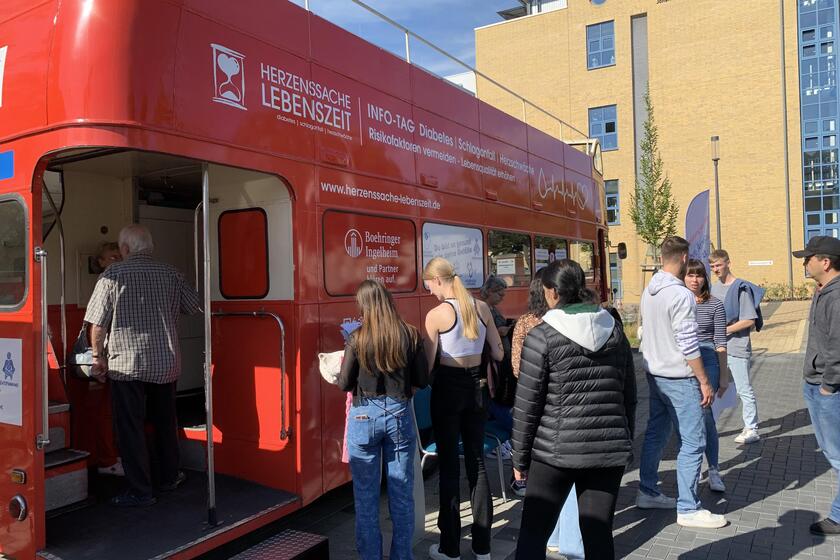 Mehrere hundert Besucher strömten zum Aufklärungsbus „Herzenssache Lebenszeit“ am Johanniter-Krankenhaus Stendal. „Ein voller Erfolg“, freute sich PD Dr. Michael Gross, Chefarzt der Kardiologie, über den großen Andrang. Im und am Gefährt im auffälligen London-Bus-Design informierten Mediziner des Klinikums und anderer Einrichtungen über Möglichkeiten, Diabetes, Bluthochdruck, erhöhte Cholesterinwerte und den damit verbundenen Folgen wie Schlaganfall und Herzinfarkt vorzubeugen.