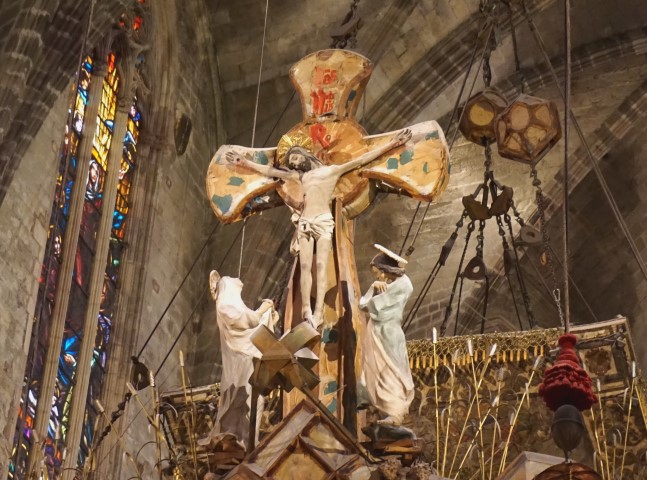 Der Tod am Kreuz war qualvoll. Das Gottes Sohn auf diese Weise gestorben ist, zeigt, dass er die Schmerzen und Qualen ausgestanden hat, die auch wir/die Menschen aushalten müssen. Gott ist im Sterben den Menschen ganz nahe. Jesus starb, so sagt es die Bibel "um die neunte Stunde". Das entspricht 15.00 Uhr, viele Gottesdienste finden daher um diese Zeit statt. Die Orgel und die Glocken schweigen, der Altar ist leer.