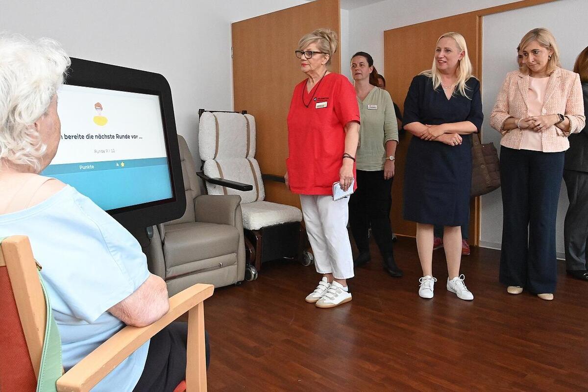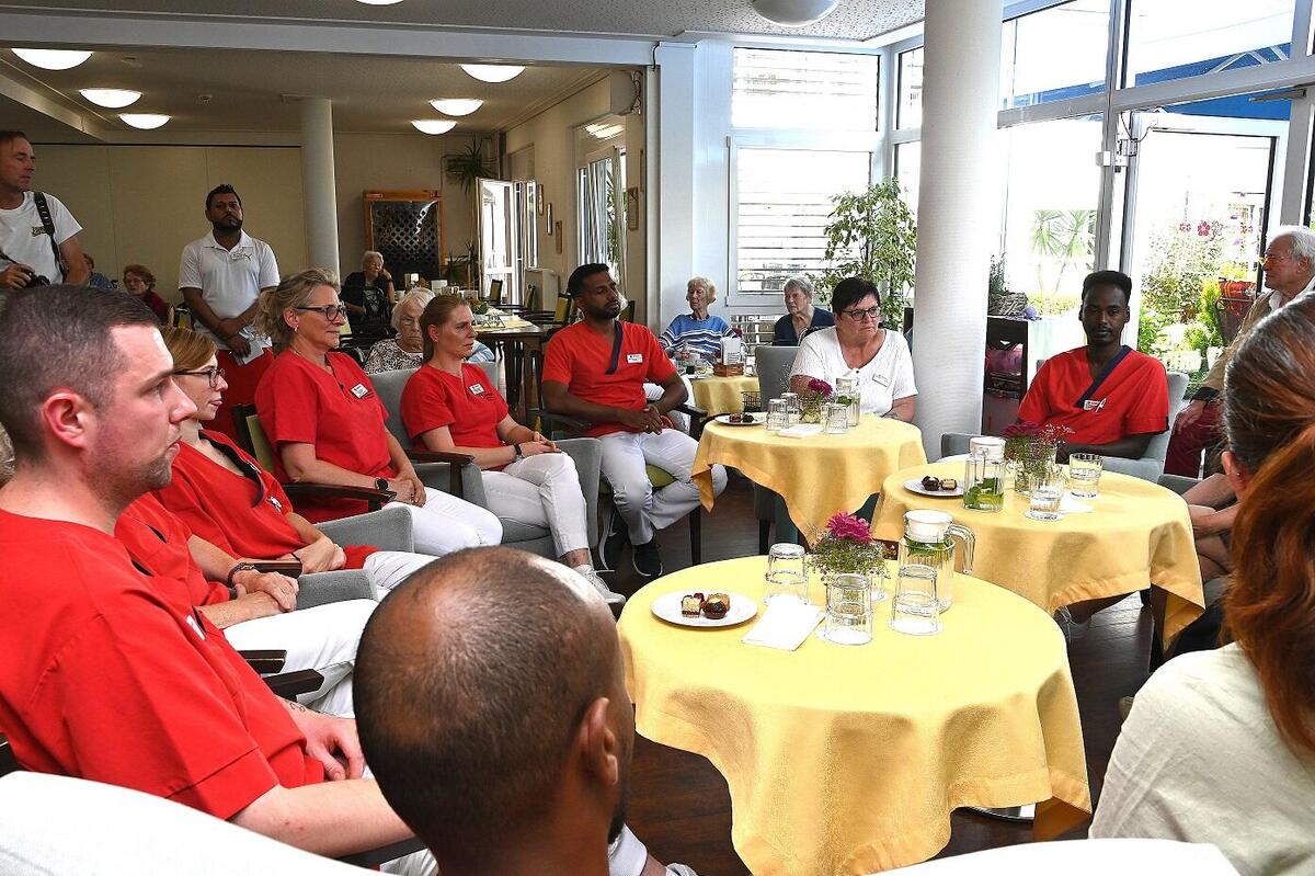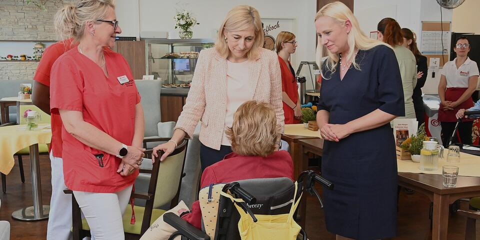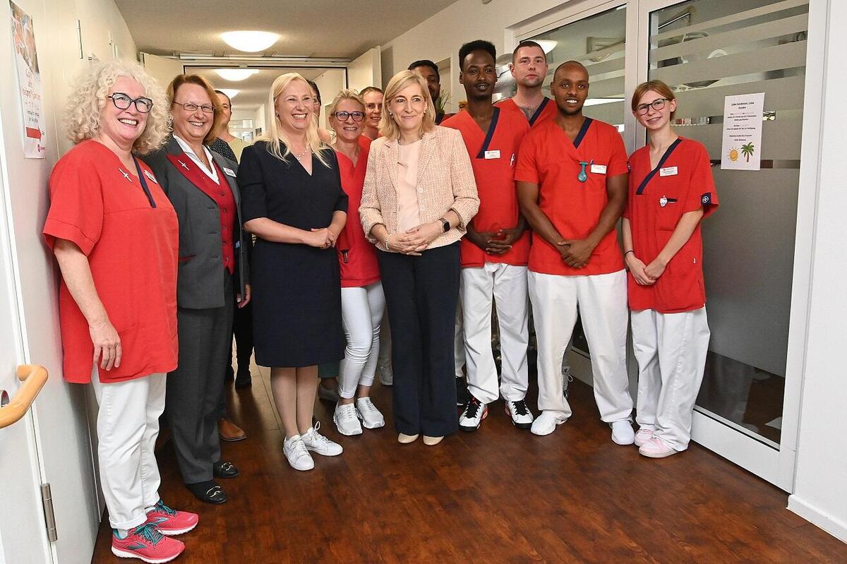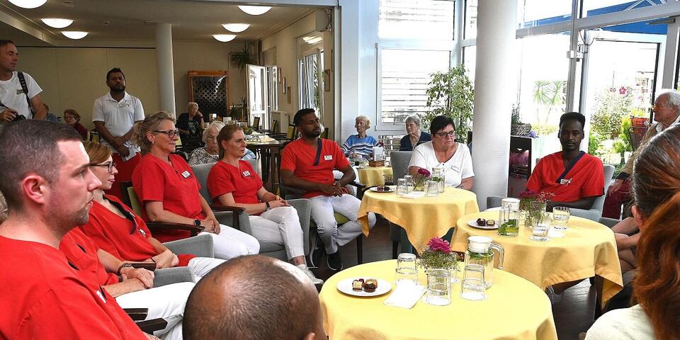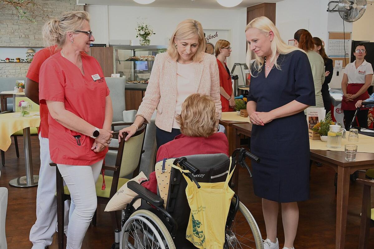 Nach einem Rundgang durch die stationäre Pflege und Tagespflege nahmen sich die Ministerinnen Zeit für eine Gesprächsrunde mit Pflegekräften, Mitarbeitenden sowie Bewohnerinnen und Bewohnern. Dabei wurde deutlich, dass der Pflegealltag weiterhin stark geprägt ist von Personalengpässen, Dokumentationspflichten und strukturellen Herausforderungen. Die Gesprächspartner schilderten offen ihre Erfahrungen – mit großem Engagement, aber auch mit dem klaren Wunsch nach konkreter politischer Unterstützung.