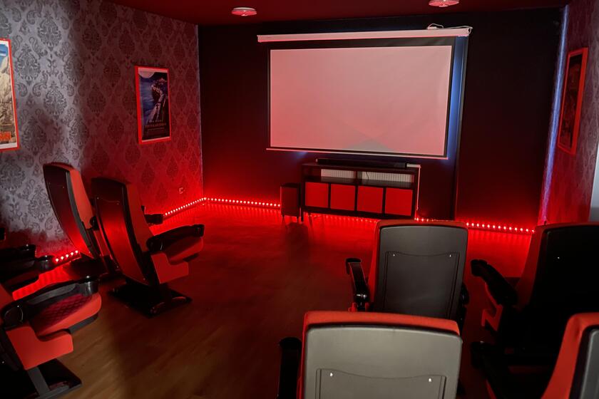 Die Räumlichkeit war mit dem ehemaligen Schulungsraum schnell gefunden. Nun ging es an die ersten Planungen und Recherchen im Internet. Das Kino sollte schließlich authentisch werden. Ab November dann wurde in dem Raum gewerkelt. Der Boden wurde neu verlegt, die Wände mit einer Struktur-Fleece-Tapete versehen und in die Bodenleisten wurden LED-Lichter verlegt. Außerdem wurde der Raum mit einem Beamer und einer Soundbar für die Akustik ausgestattet. Und zu guter Letzt wurden acht Kinosessel sowie eine Popcorn Maschine aufgestellt und eine Wand mit Original Filmplakaten dekoriert.