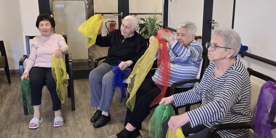 Auch Bewohnerinnen und Bewohner mit Bewegungseinschränkungen oder nachlassender Ausdauer können an den Angeboten teilnehmen. Die Übungen sind so gestaltet, dass jeder im eigenen Tempo mitmachen kann – ob im Sitzen oder im Stehen.