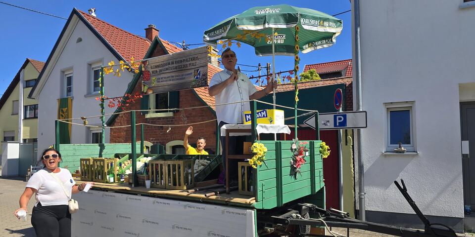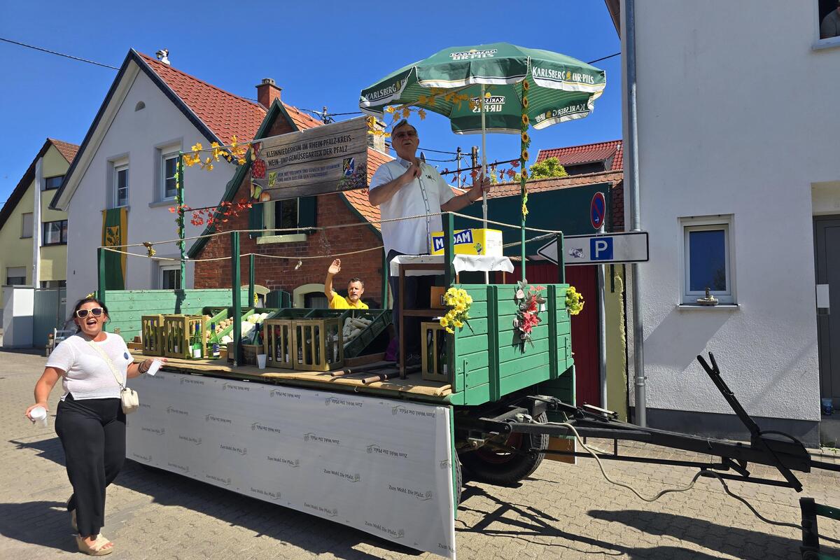 Für schwungvolle Musik sorgte die Blaskapelle, und der Turnverein begeisterte mit flotten Darbietungen. Zahlreiche festlich geschmückte Wagen, liebevoll dekoriert mit Blumen und kreativen Motiven, zogen vorbei. Natürlich durfte auch ein Glas Pfälzer Wein nicht fehlen – schließlich ist er fester Bestandteil jeder Kerwe. Die fröhliche Stimmung war überall spürbar, und so erlebten unsere Bewohner einen heiteren Sonntag voller Eindrücke und Erinnerungen.